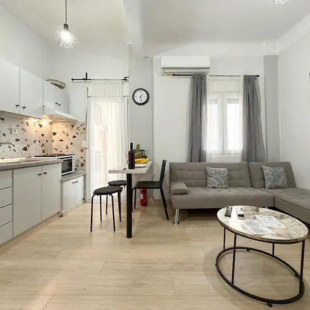 L'appartamento dispone di un angolo cottura che vanta un tostapane e un forno. La fermata dell'autobus Lefkos Pyrgos è situata a soli 350 metri dalla struttura.
